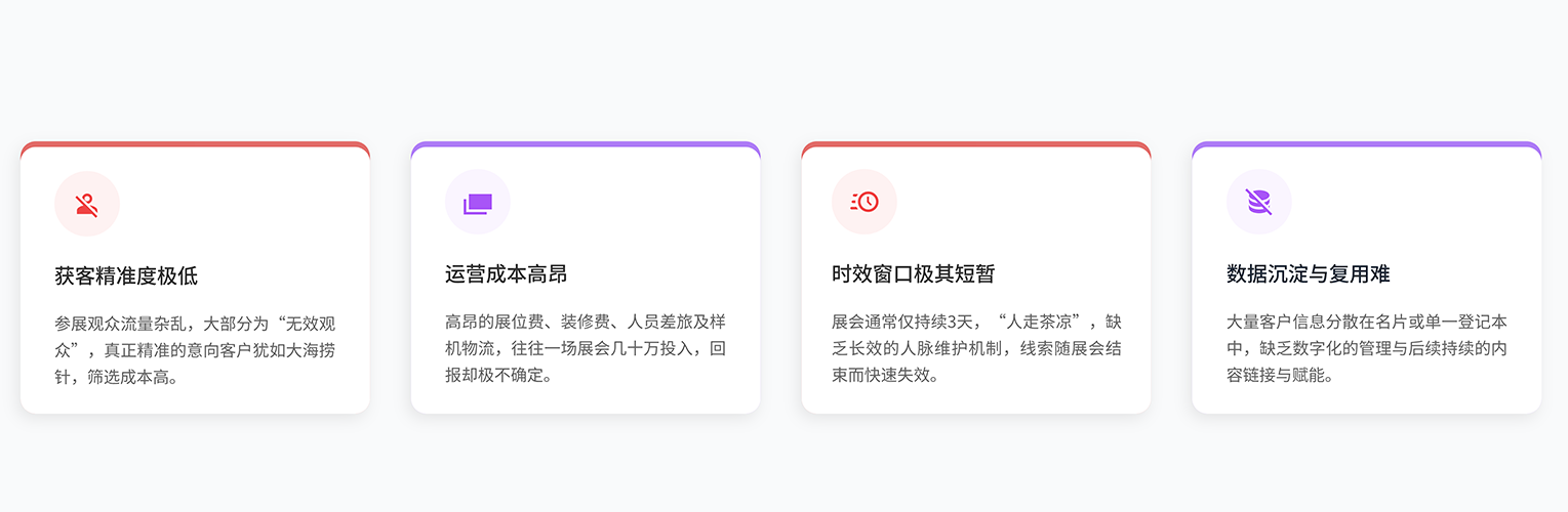 展会通常仅持续3天,“人走茶凉”,缺乏长效的人脉维护机制,线索随展会结束而快速失效。